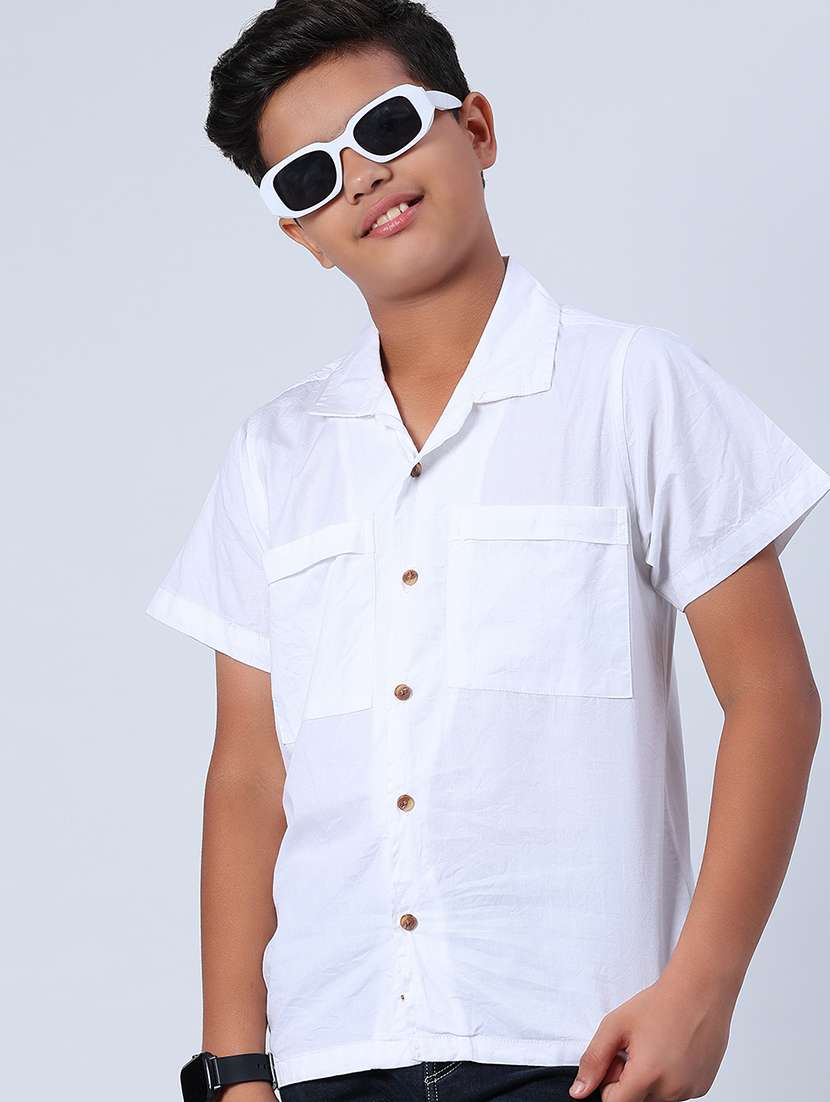 boys solid cuban collar short sleeve shirt