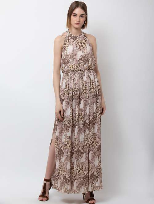 halter neck animal print maxi dress