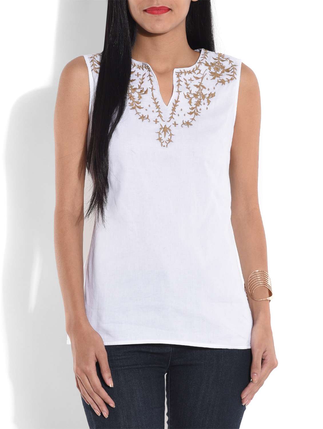 - Opt for this top made up of cotton material and get it in a varied neck design.