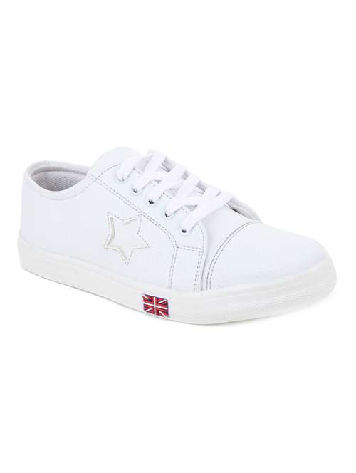 white lace-up sneaker