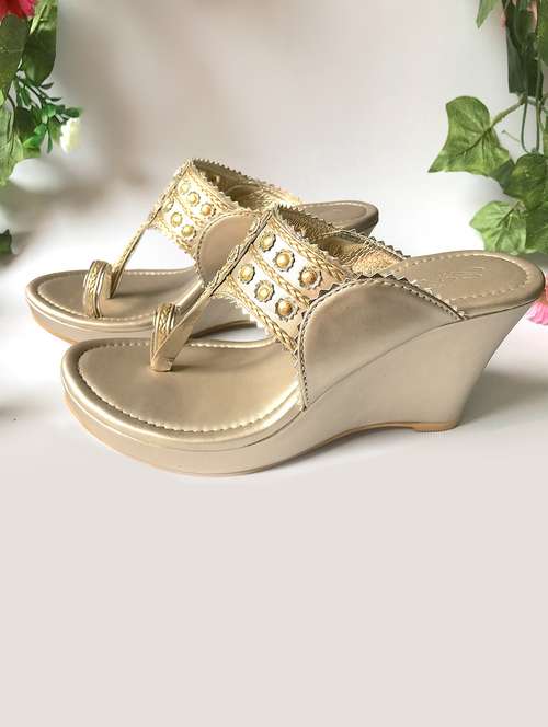 - » dusty gold , gold filigree kolapuri wedges