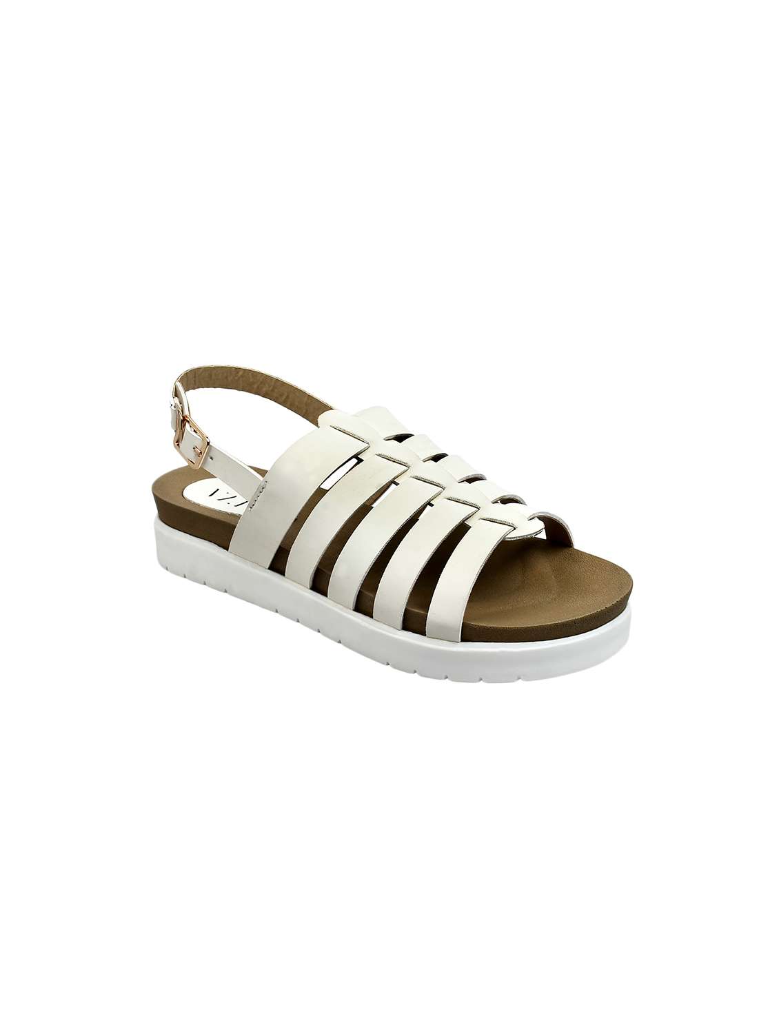 white faux leather back strap sandals