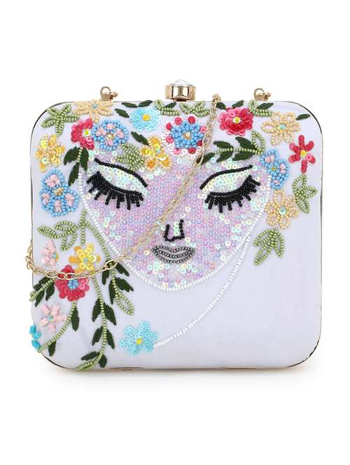 - » white faux silk box clutch