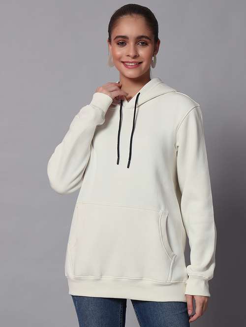 women solid long sleeve hooded sweatshirt