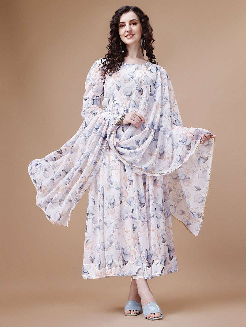 - Find gorgeous sets of ethnic wears in trending designs in white colors suitable for evening wear of occasions.