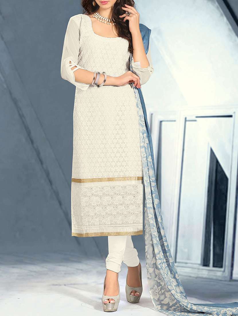 - » white georgette unstitched suit