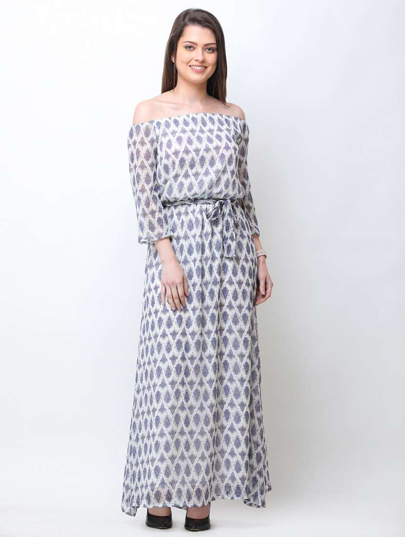 - Dress up in a soothing pattern and don this dress made of georgette material.