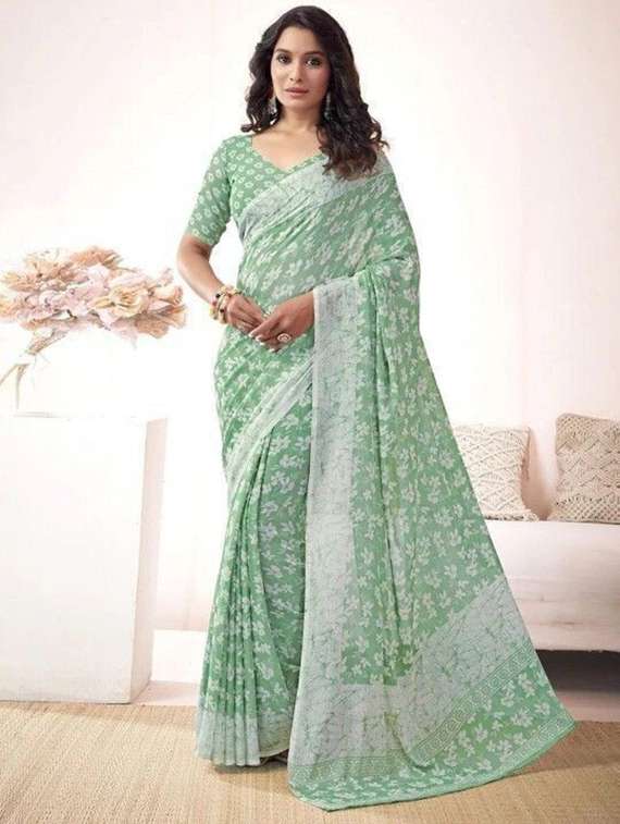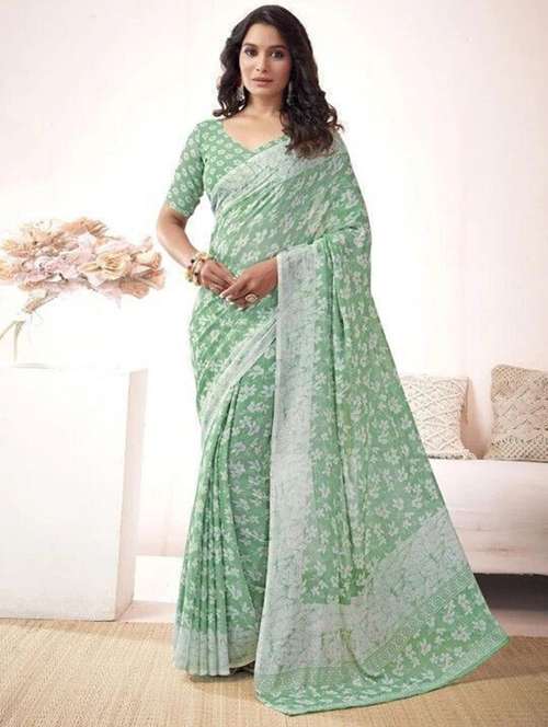 women printed casual wear saree with blouse