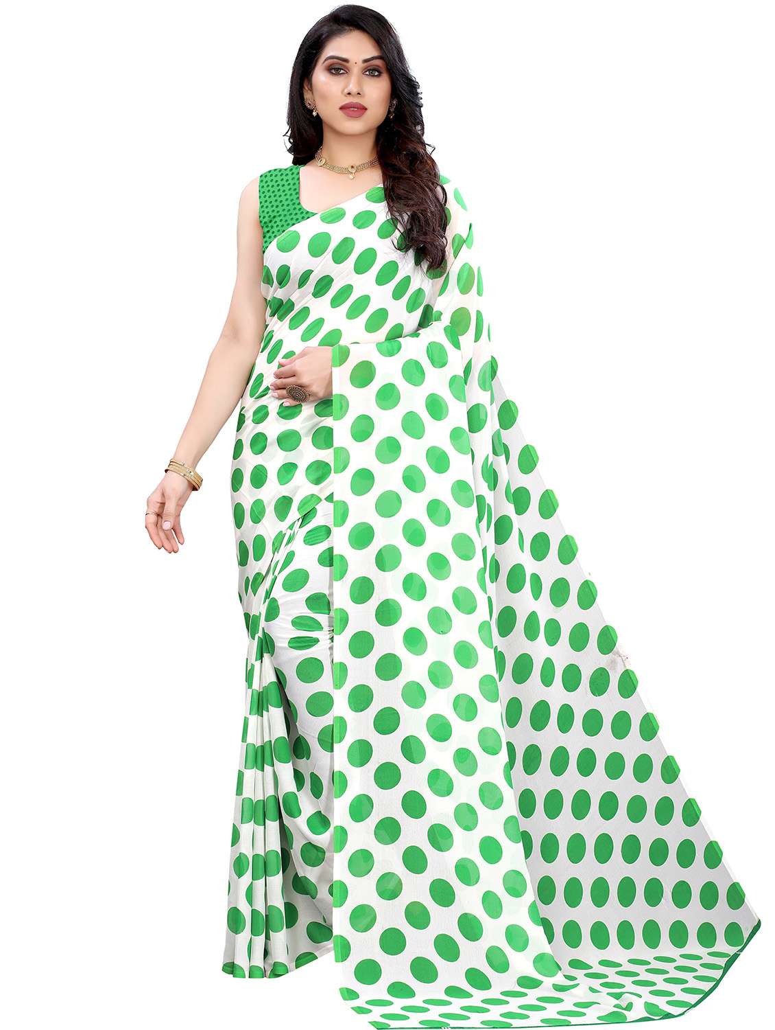 Be the cynosure of all eyes wearing this Green coloured Block sarees from the house of Florence. Made of Georgette, this saree will keep you comfortable throughout the day. The fine Work enhances the visual appeal of this Combo saree. each saree measures 5.5 m and it comes with a 0.80 m blouse piece.