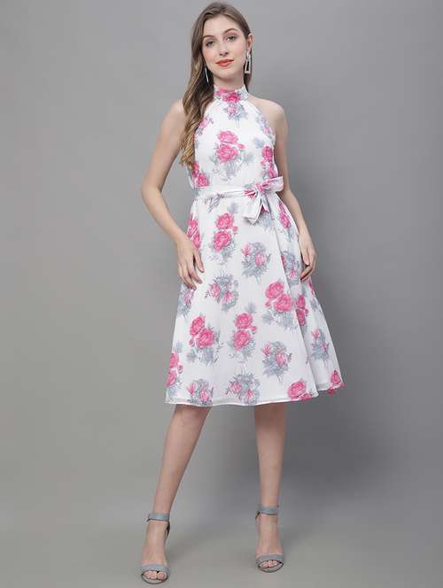 - » women multi color printed georgette a-line dress