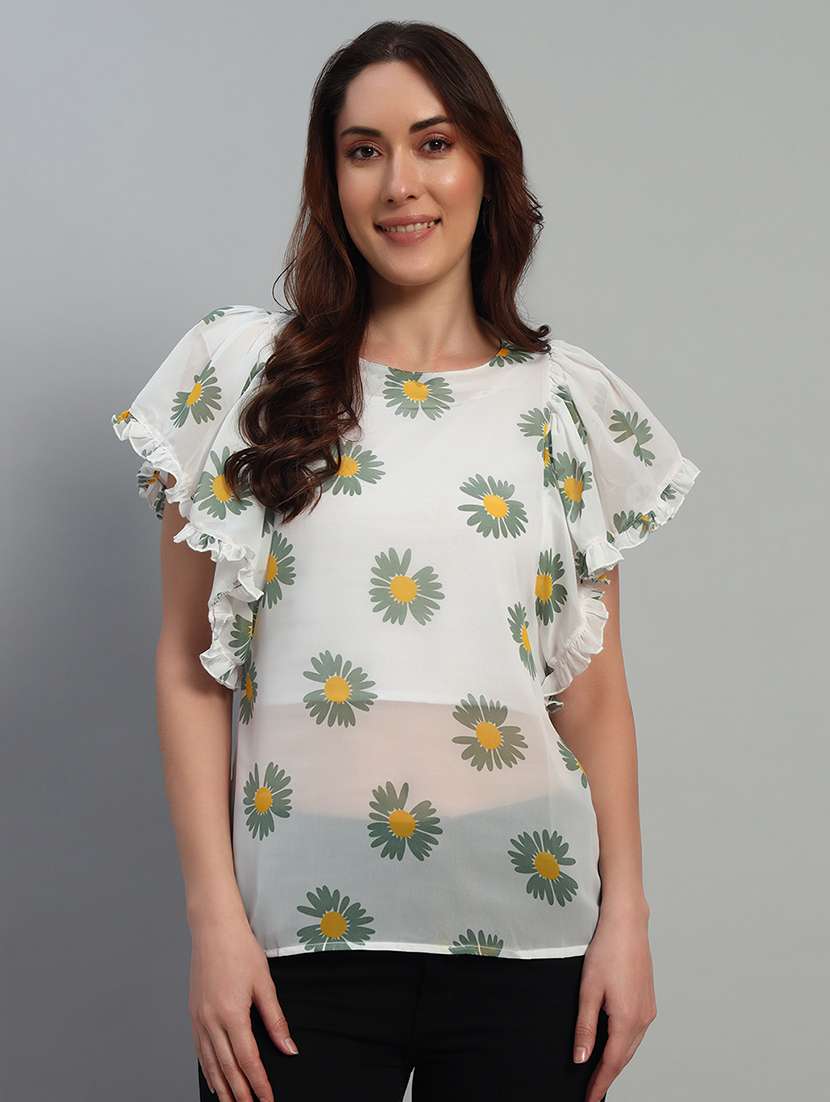 women floral print ruffled sleeves top
