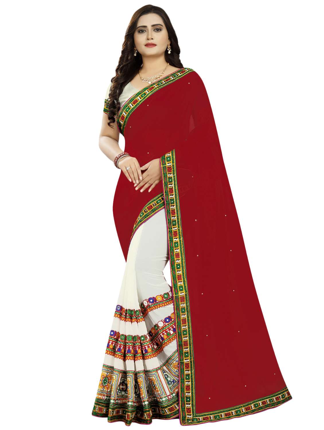 Saree fabric : Georgette Work : Kutchi heavy Embroidered With Lace Blouse fabric : Georgette With Embroidery Lace Saree Length : 5.5 Mtr Blouse Length : 0.8 Mtr UnStitched Blouse Type : Party/Festive/Wedding Wear Saree