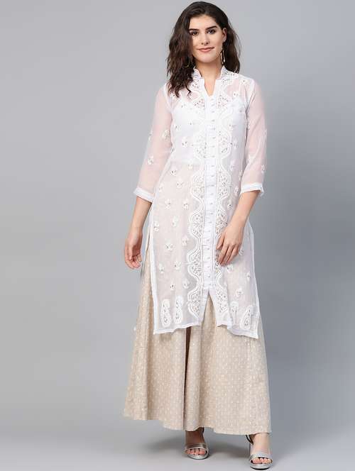 white chikankari a-line kurta - 17594142 - Very Small Image - 1