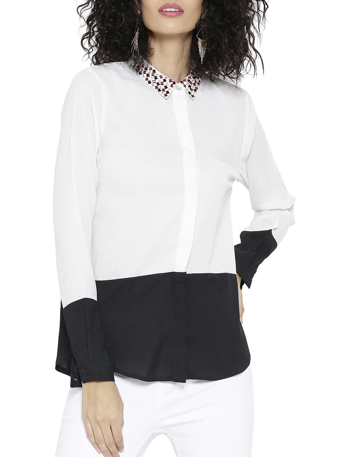 white poly georgette regular shirt