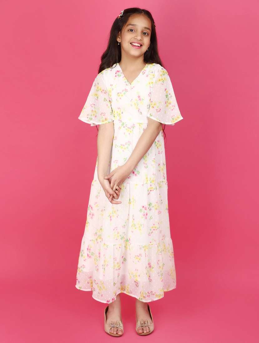 - » girls white v neck printed a-line dress