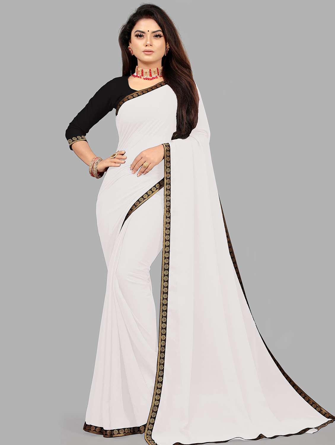 solid lace bordered saree with blouse - 19736019 - Very Small Image - 1