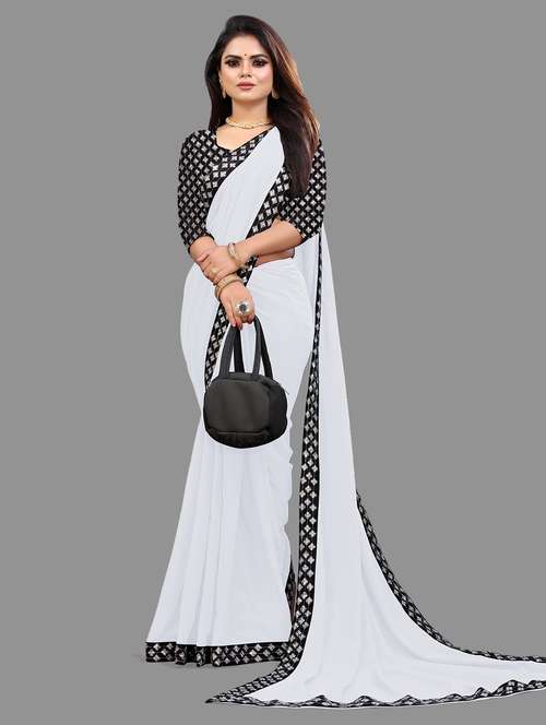 solid bordered saree with blouse