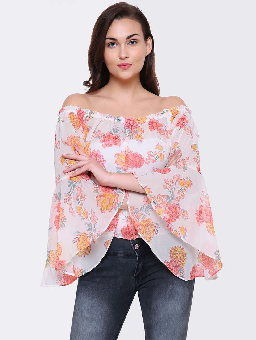 off shoulder bell sleeved floral top