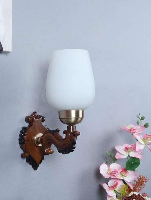 eliante brown wood base white glass shade wall light - 8451-1w - without bulb