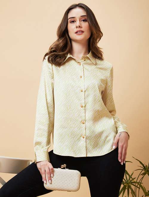 Globus presents these fashionable and classy Women White Printed Party Shirt Style Top. Made with superior quality skin friendly Polyester fabric for comfort of wearing. The Party Shirt Style Top are sure to keep you looking stylish and feeling comfortable through the day. So go ahead, stand apart from the crowd and create your own trends.