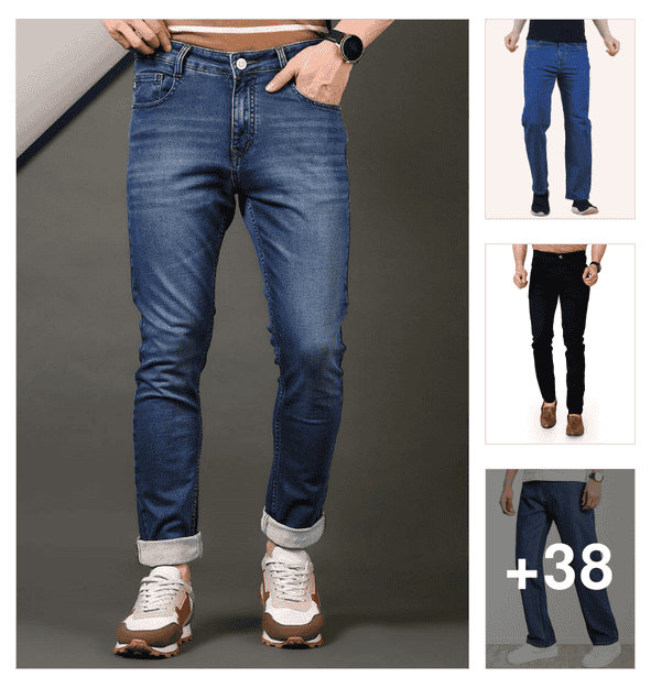 men plain mid rise full length jeans