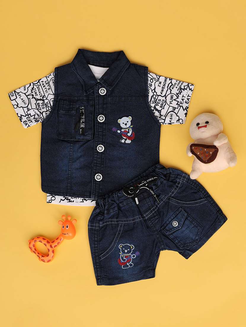 - » boys round neck printed shorts set