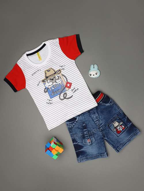 - » boys round neck printed shorts set