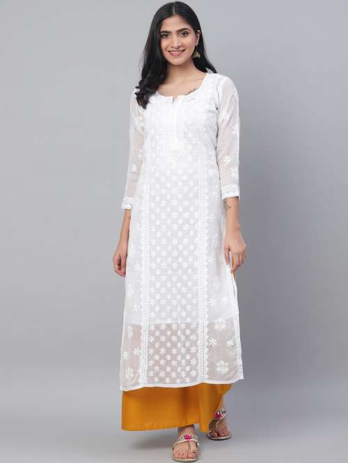 - » kota fabric chikankari white straight kurta
