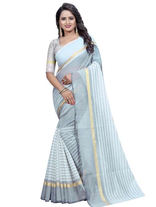 stripes kota cotton saree with blouse - 15604213 - Very Small Image - 1