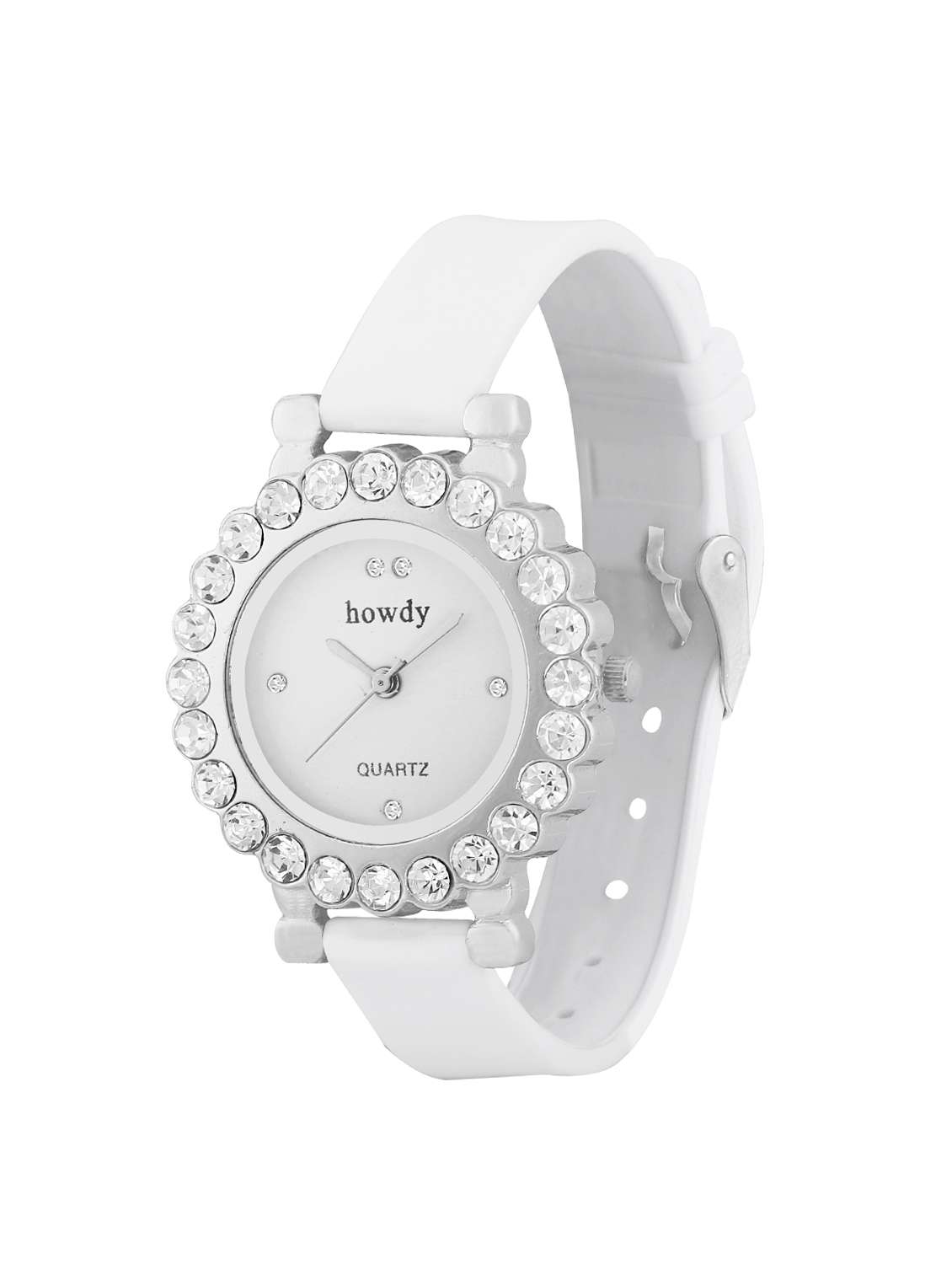 howdy Crystal Studded Analog White Dial White Strap Watch- for - Women's & Girl's ss372