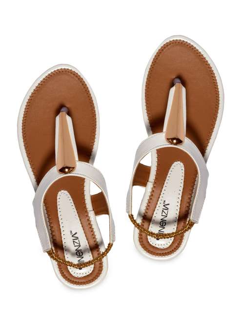 white leatherette plain sandals