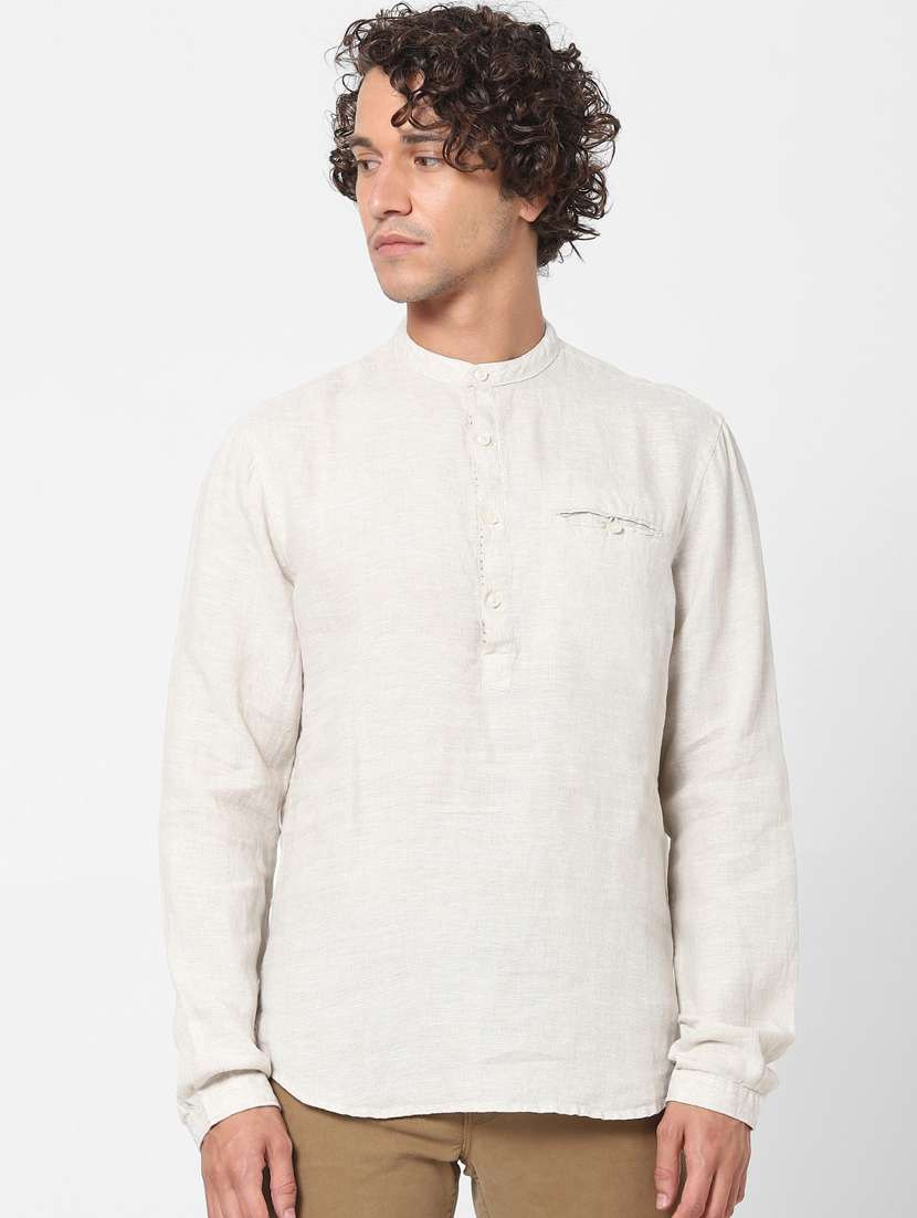 - » cream solid linen casual shirt