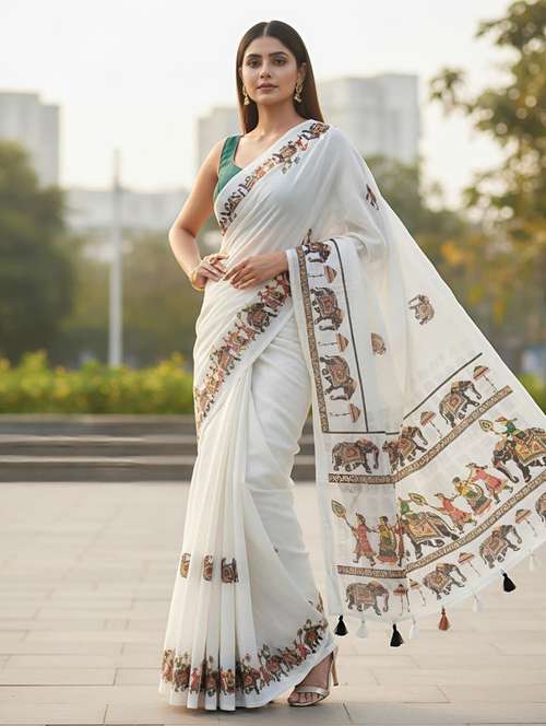 Elevate your ethnic wardrobe with our DarKau Dusk Bandhani Saree, featuring a rich black base adorned with intricate bandhani prints in a symmetrical grid layout. Accents of yellow and white create a stunning contrast, while the subtle sheen of the fabric adds elegance. Ideal for festive nights, weddings, or cultural events, this saree combines traditional craftsmanship with modern flair.