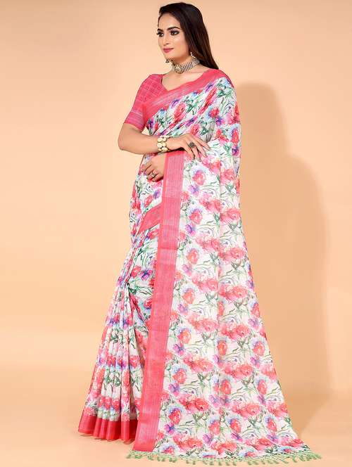 - » white floral print saree with blouse