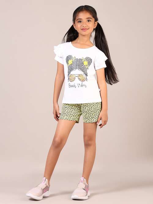 - Browse through the huge collection of casual wear twin sets and jump suits for girls in white colors and designs to make your young lady look the fashionista that she is.