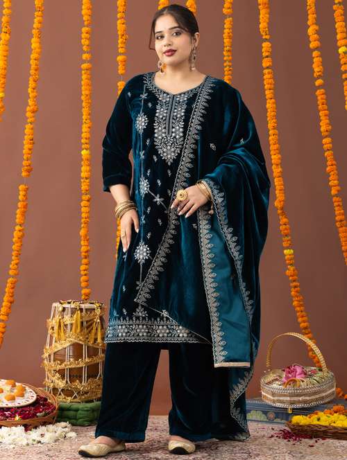 - » women plus size three quarter sleeve kurta palazzo with dupatta set