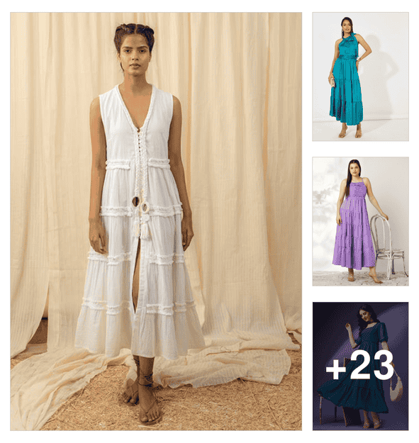 majestic by baani women tiered white maxi length dress