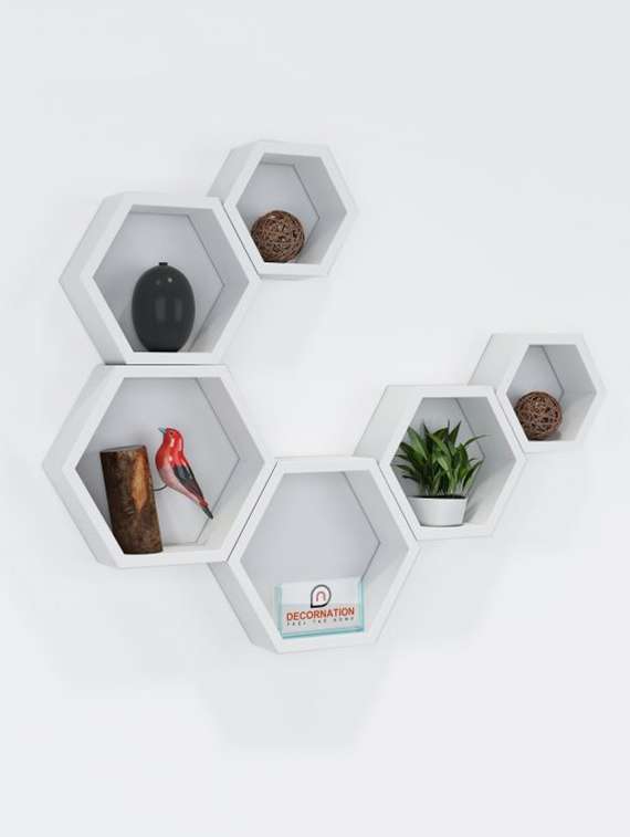 - » home deco floating shelves hexagon shape storage wall shelves set of 6