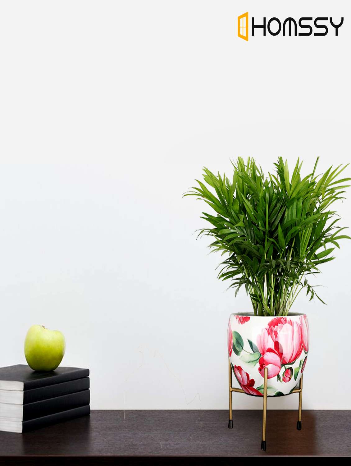 printed metal planter with tripod stand red & white floral home decor (plants not included) pack of 2