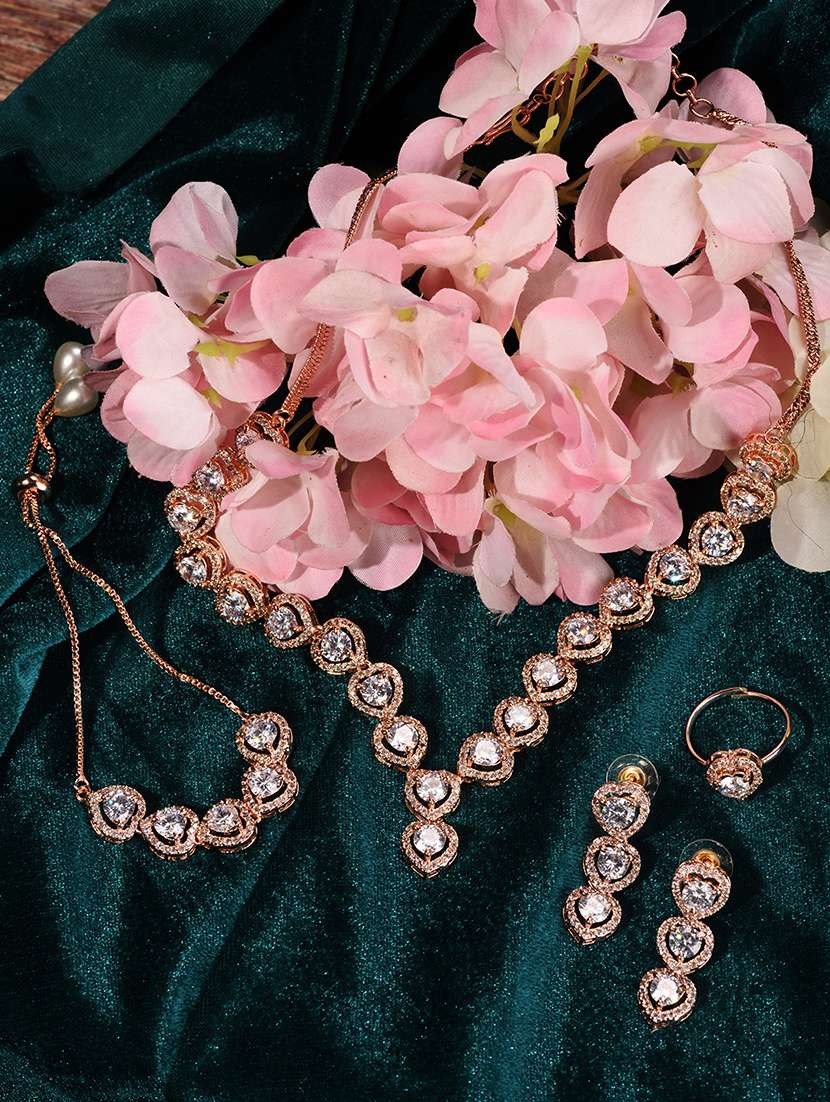 - » rose gold toned ad studded minimal heart shaped necklace set combo