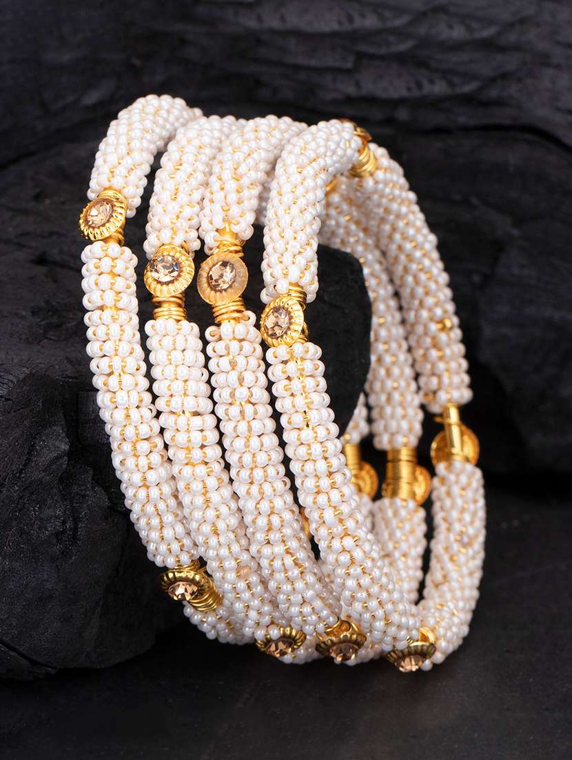 - » set of 4 white metal bangle