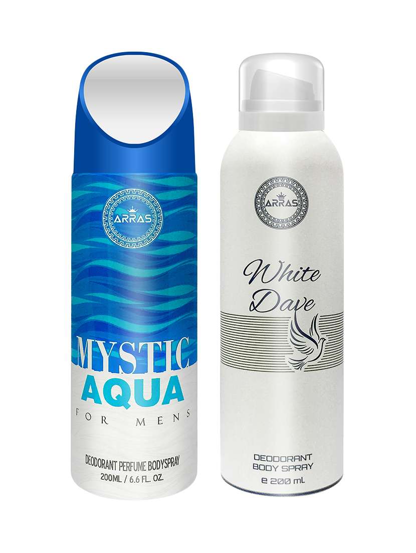arras mystic aqua & white dave deodorant body spray, 200ml pack of 2