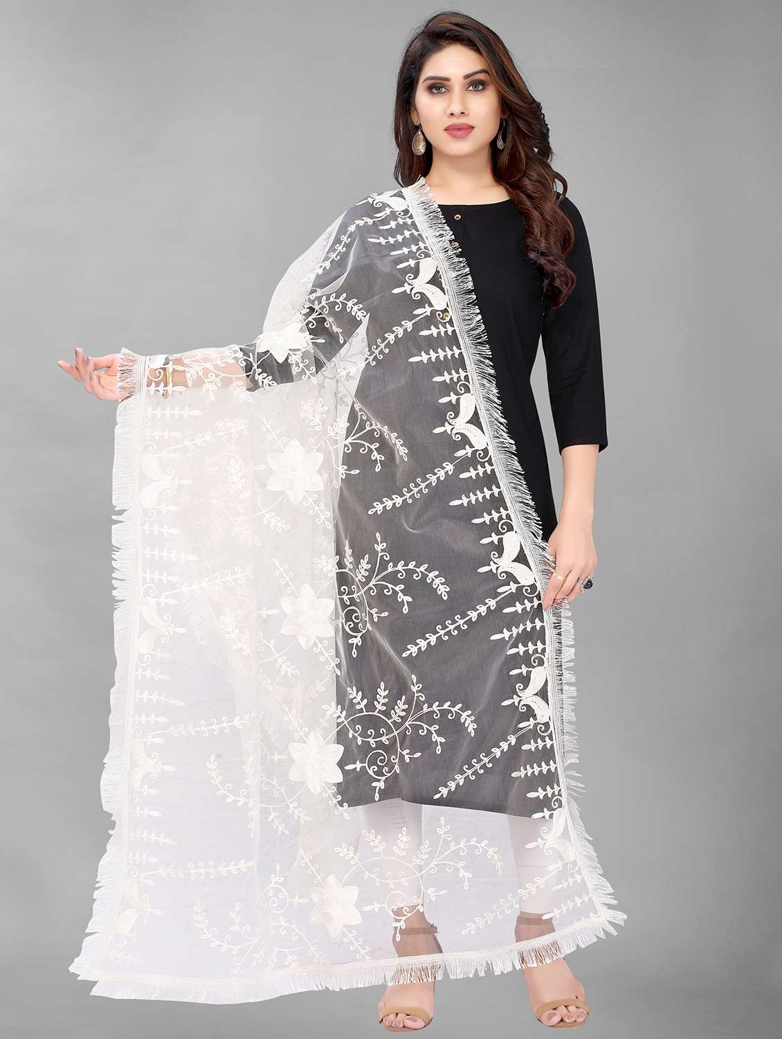 white embroidered dupatta