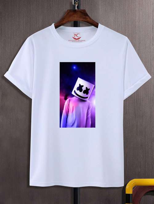 white graphic round neck t-shirts
