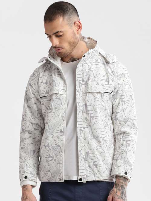 - » white printed detailed casual jacket with sweatshirt