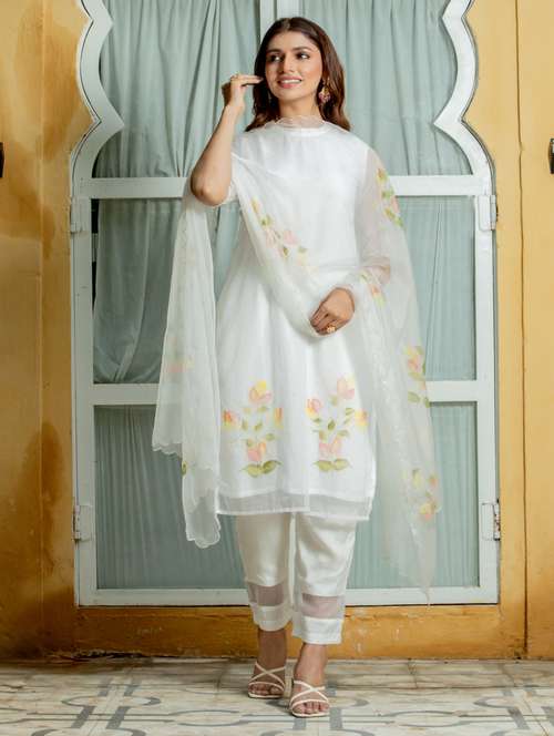 - Find gorgeous sets of ethnic wears in trending designs in white colors suitable for festive wear of occasions.