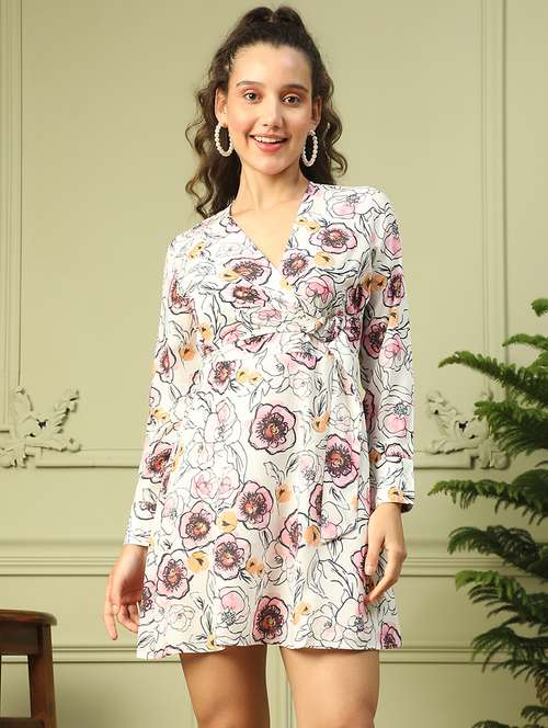Bring a charm to your wardrobe with this Posh White Floral Print Long Sleeve Women Wrap Dress. Featuring a flattering V-neck and long sleeves, this above-knee-length dress is designed to offer an elegant trendy look and the wrap style cinches at the waist, enhancing your figure. Made from soft polyester, this dress ensures comfort and ease of movement. Perfect for casual outings, brunches, or evening events, it effortlessly combines style, comfort, and versatility for any occasion