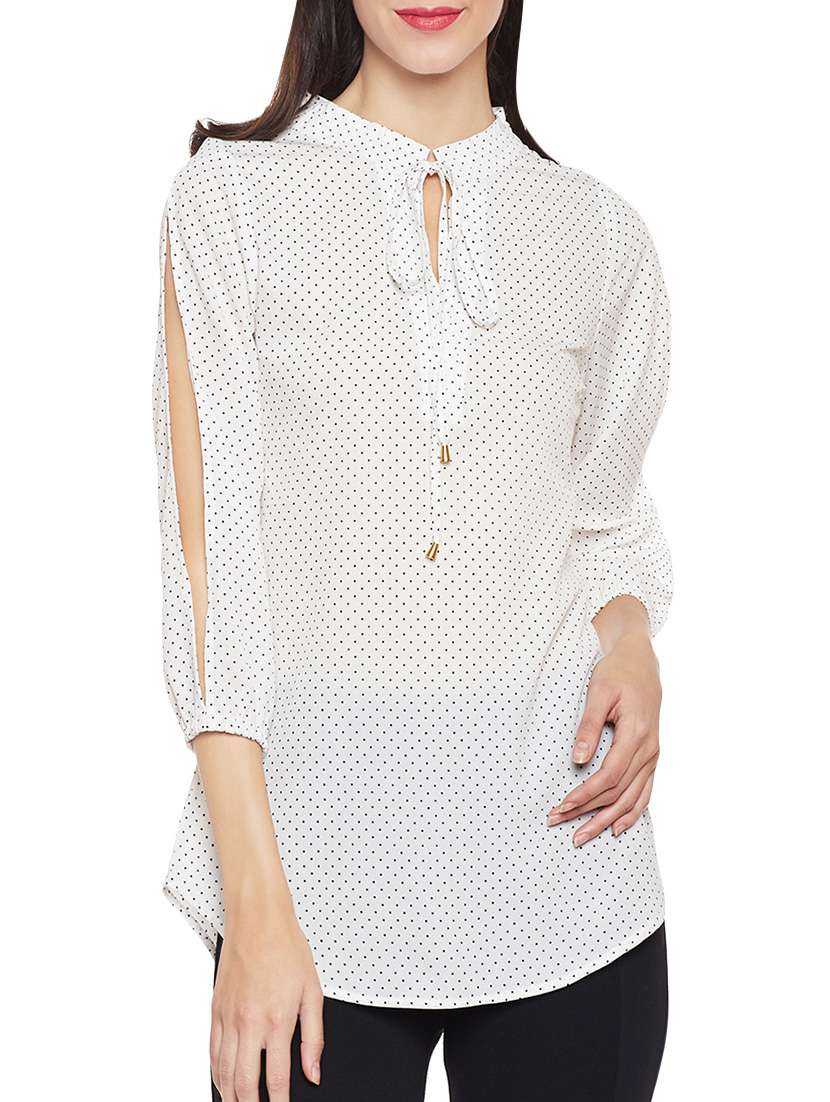 - » polka dot white slit sleeve top