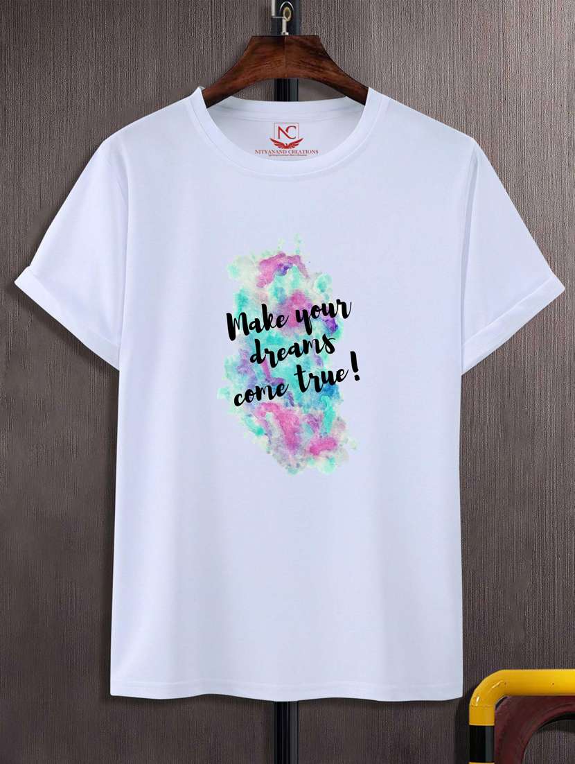 white round neck chest printed t-shirt