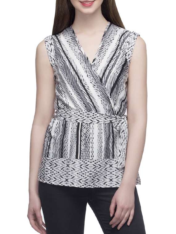white printed belted top